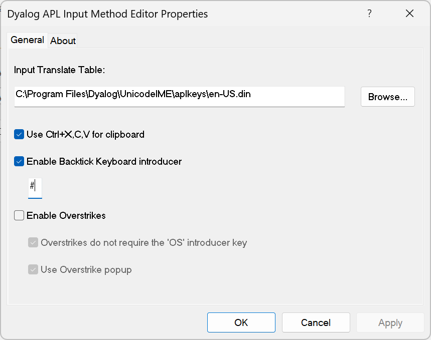 Dyalog IME for Microsoft Windows Configuration Dialog